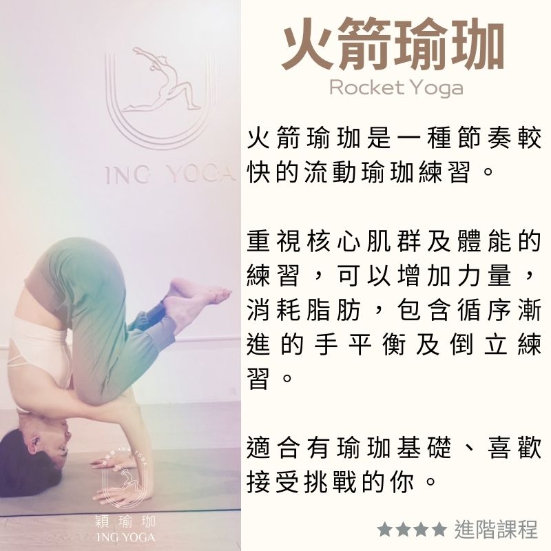 穎瑜珈用心規劃各種不同瑜珈主軸課程,從靜心療癒的頌缽冥想,到進階力量的火箭、倒立手平衡;不同強度課程滿足珈人練習需求。