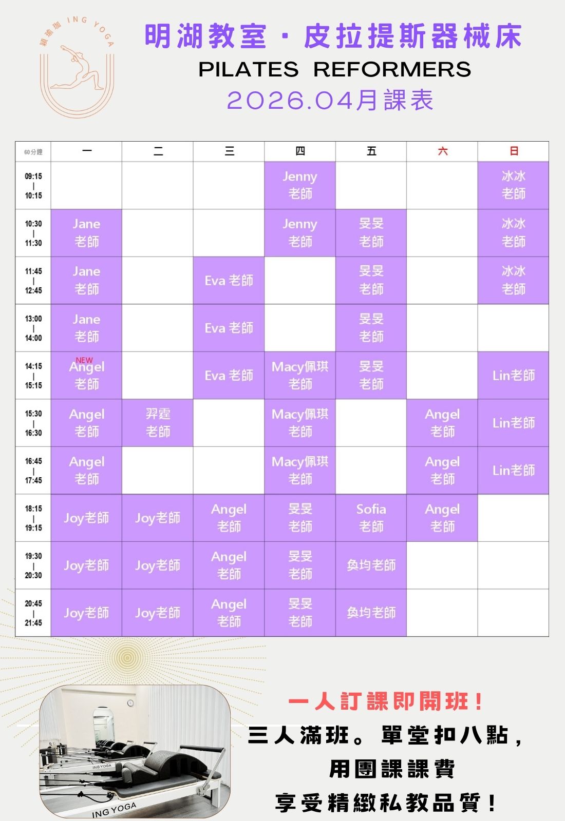 明湖館:皮拉提斯器械床教室