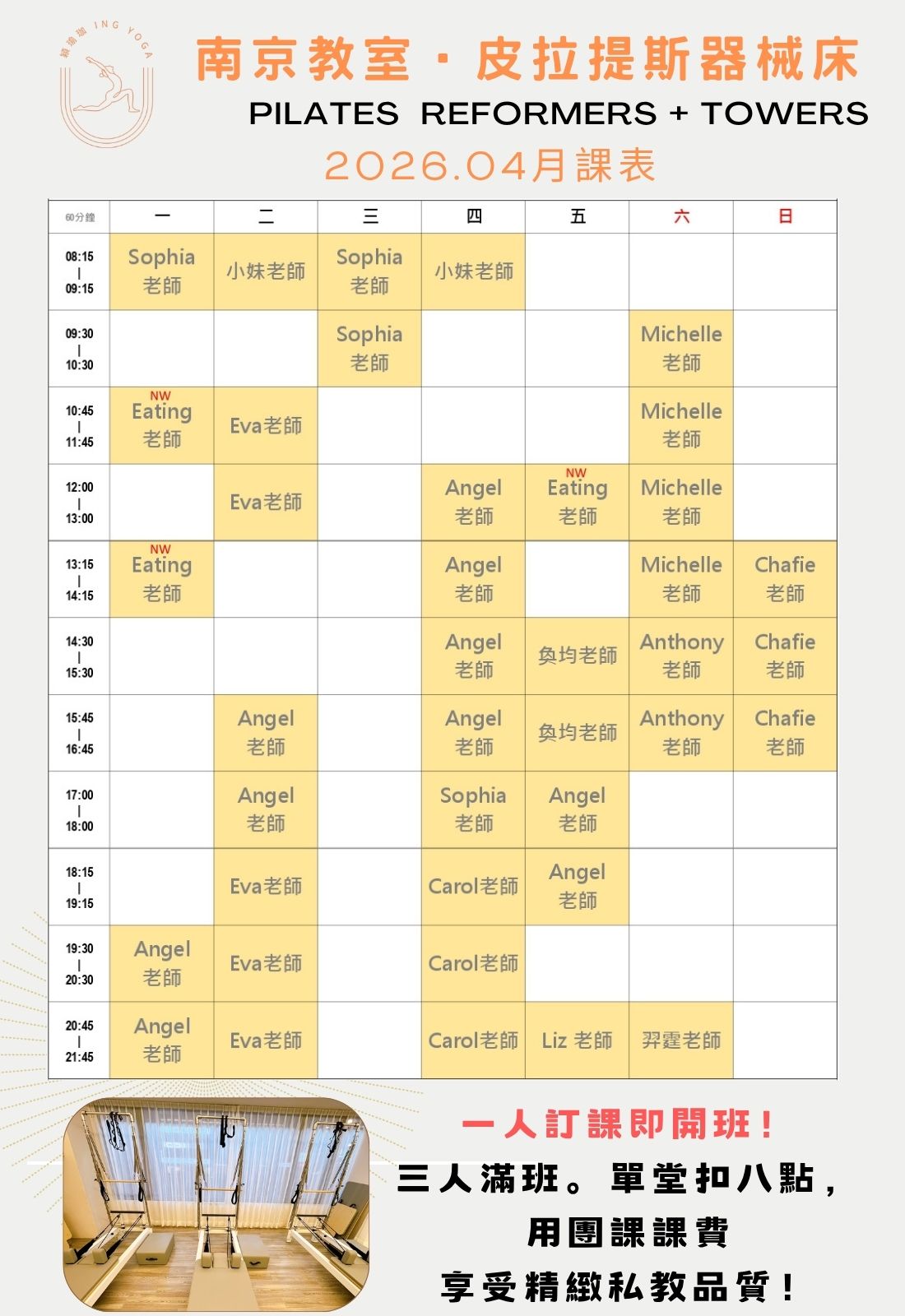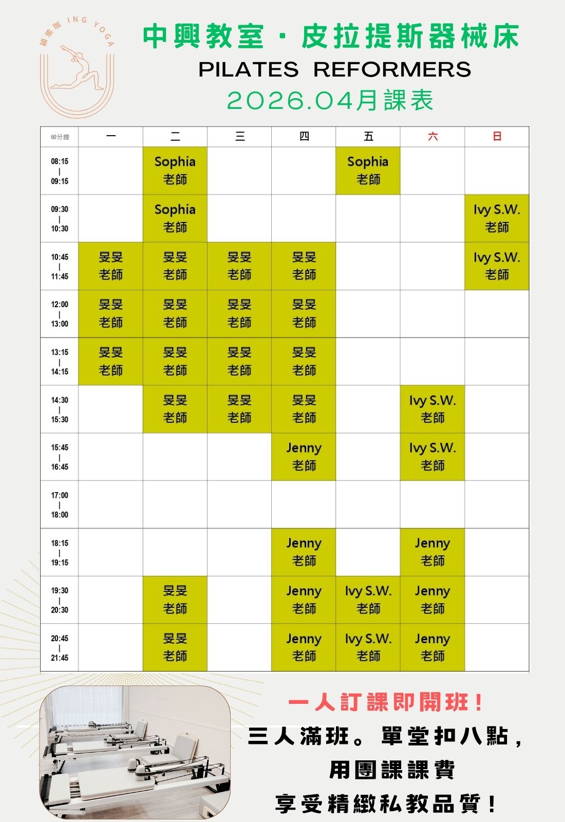 中興館:皮拉提斯器械床教室